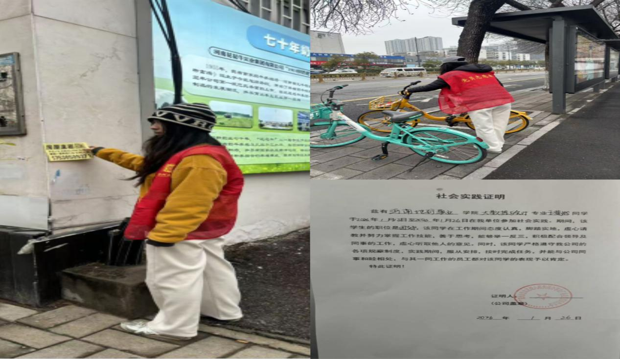 刘毅欣是电子商务三班的员工,同时担任班级班长一职。寒假期间,他主动投身老员工返家乡社会实践,前往河南省三门峡市渑池县街道办事处,以社区工作者的身份参与基层服务,在实践中锤炼本领、服务群众,用实际行动践行青年责任。