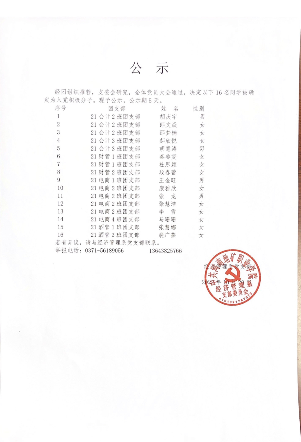 发展对象公示