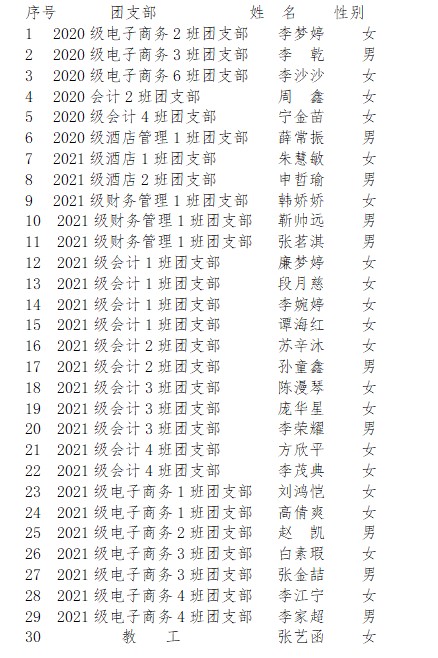 经团组织推荐,支委会研究,全体党员大会通过,决定以下教师和同学被确定为入党积极分子。现予公示,公示期5天。