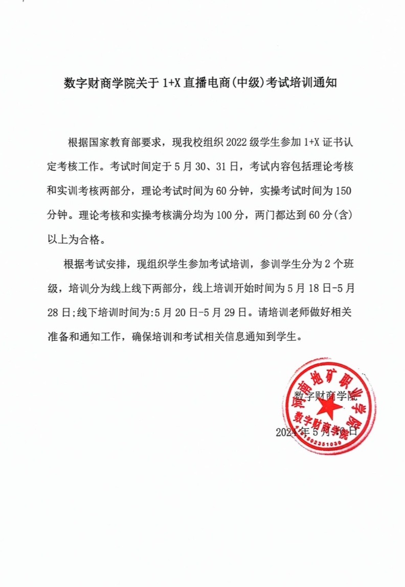 米兰·(milan)体育官网关于1+X直播电商(中级)考试培训通知