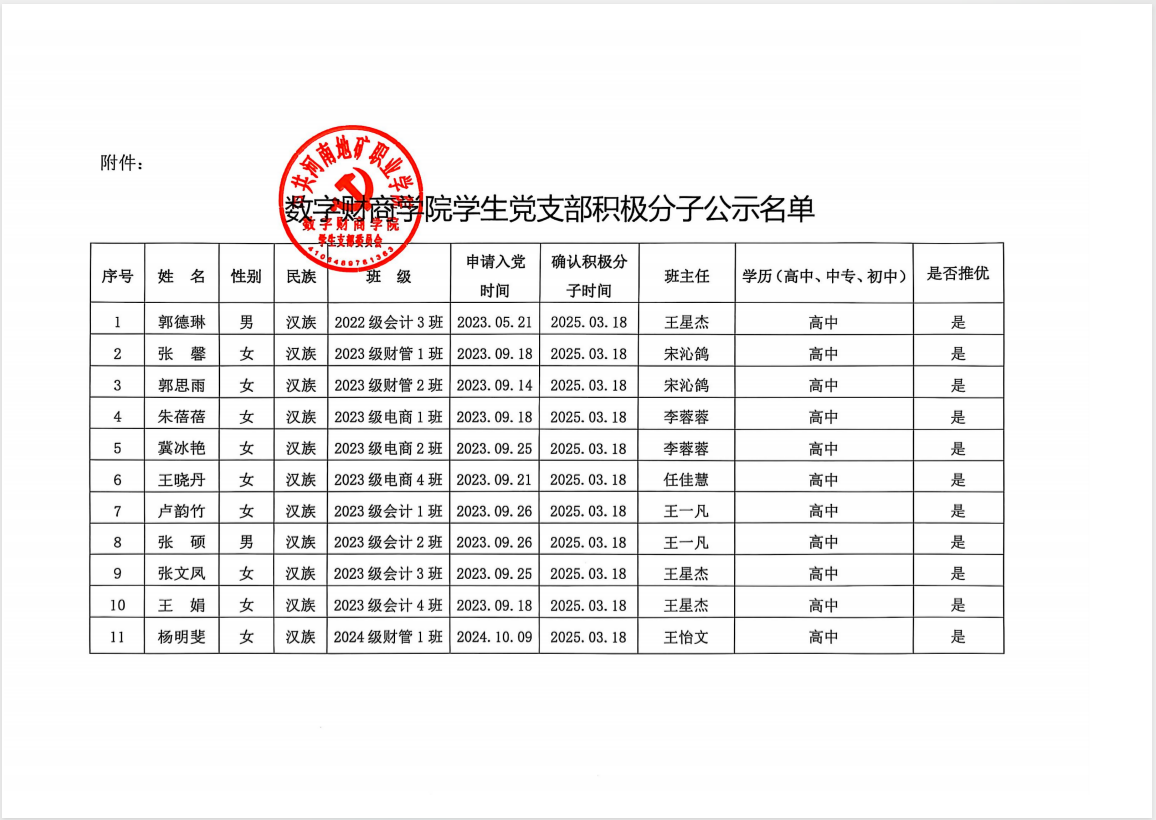 2025上半年入党积极分子推优公示