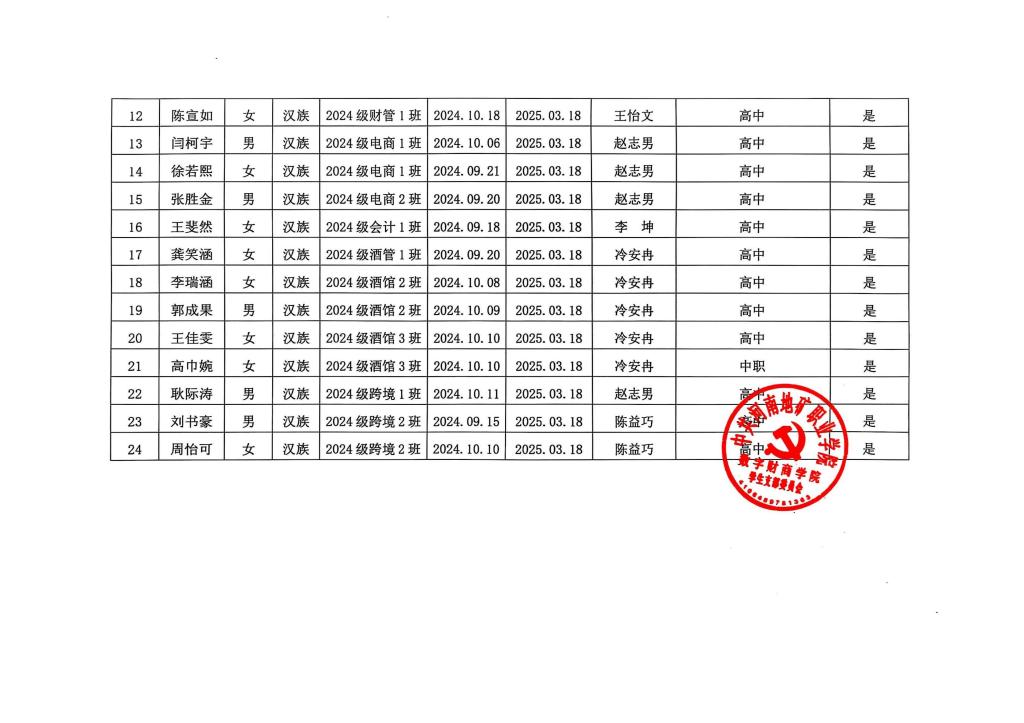 关于2025年上半年新发展团员名单公示