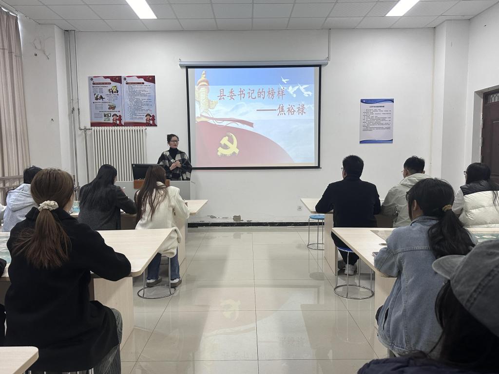 11月5日,王星杰结合焦裕禄同志的事迹向入团积极分子讲解焦裕禄亲民爱民、艰苦奋斗、科学求实、迎难而上、无私奉献的精神内涵,引导同学们反思自身,在追求个人发展的同时,如何更好地回报社会,关爱他人。