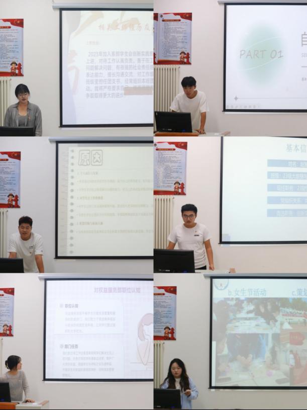 参加竞选的14名同学分别从个人基本情况、意向部门、工作优势等方面进行了自我介绍,分享了未来工作规划和展望,表达了愿意投身员工会工作、服务同学的意愿。