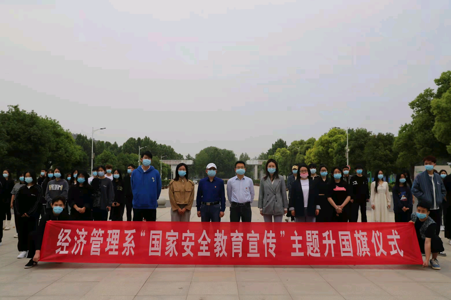 2022年4月25日,经济管理系“国家安全教育宣传”主题升国旗仪式在国旗广场举行。参加本次升国旗仪式的有:经济管理系党支部书记陈宇、系主任张言雄、系团总支书记王雨、辅导员冷安冉、任佳慧、李坤,以及我系2020级团学干部。