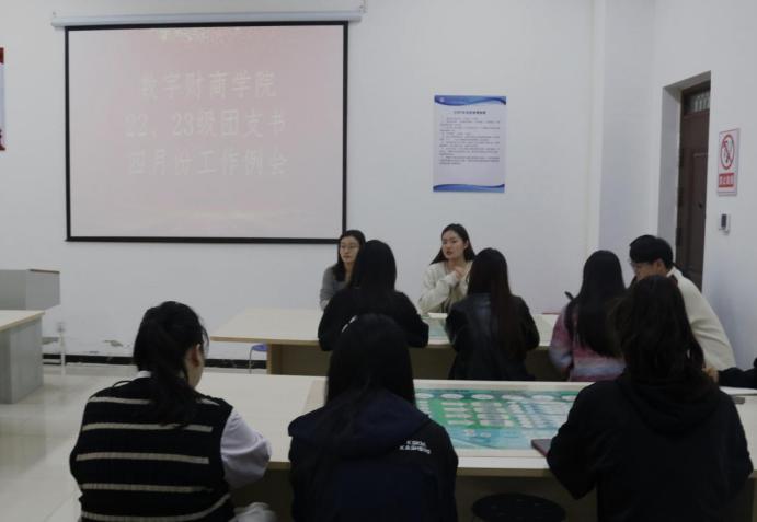 4月10日中午,米兰·(milan)体育官网团总支在ERP教室召开4月份工作例会,团总支书记王雨,团干王星杰,团总支各部门部长,22、23级全体团支书参加会议。会议由王雨主持。