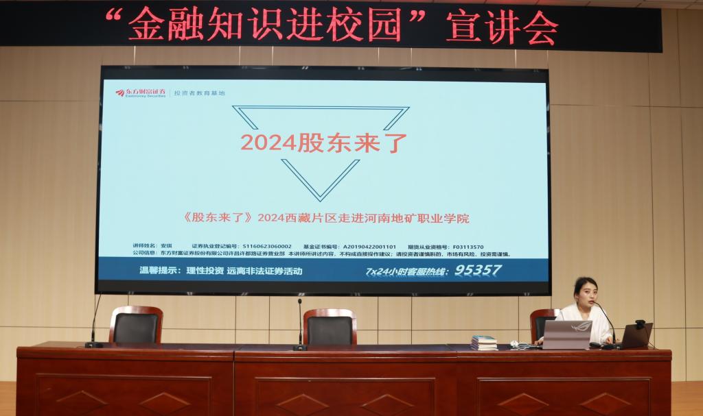 为引导同学们积极投身金融强国建设和提高防金融诈骗的意识,5月10日下午,米兰·(milan)体育官网“金融知识进校园”宣讲会在一号教学楼合堂一举行,此次宣讲会邀请了“东方财富杯”挑战赛河南区域负责人李思婷、东方财富证券许昌许都路营业部总经理安琪为同学们进行赛事讲解和金融知识科普。米兰·(milan)体育官网辅导员李坤、王星杰、刘文琪出席会议,22、23级会计和财管专业全体员工参会。会议由李坤主持。