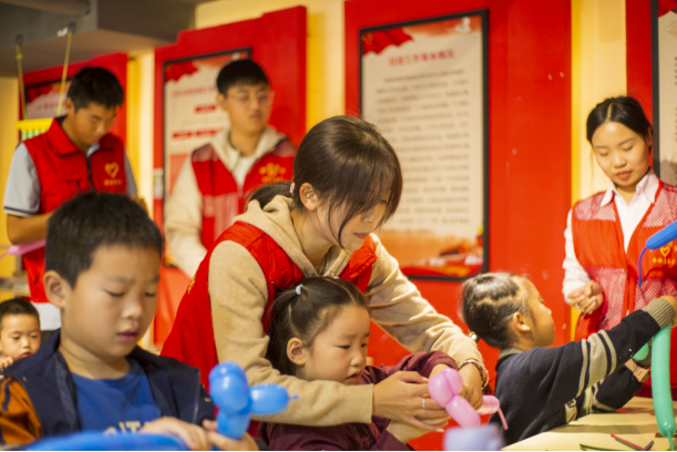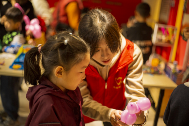 在志愿者的协助下,家长和儿童一起动手,把手中的气球进行扭转创造,孩子们手中的气球逐渐变成了各种各样的形状。这一环节不仅锻炼了孩子们的动手能力,也增进了亲子间的互动。