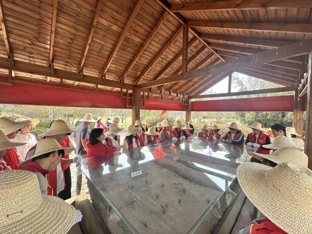 下午,研学队伍转赴焦裕禄精神教育实践基地。在昔日黄沙肆虐的黄河故道区,员工们戴上草帽、扛起铁锹,投身“翻土压沙”“泡桐育苗”等劳动实践。基地技术员现场演示“贴膏药”“扎针”等科学治沙技法——将黏土覆盖沙丘表面,再种植根系发达的固沙植物。员工们多人一组协作实践,在汗水中体悟当年兰考人民“敢教日月换新天”的奋斗豪情。