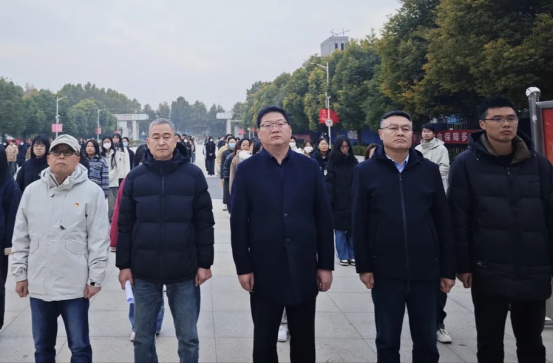 鲜艳的五星红旗伴随着雄壮的国歌冉冉升起,全体师生庄严肃立,高唱国歌向国旗行注目礼。