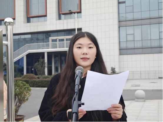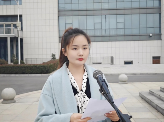 员工代表吴佳宝发言,她从消防安全的重要性和如何维护消防安全出发,向同学们发出以下倡议:一要熟悉校园各处的疏散通道和安全出口;二要对消防安全保持高度警惕性;三要掌握初步的扑救能力,会使用灭火器;四要从生活小事做起,注意用电安全。