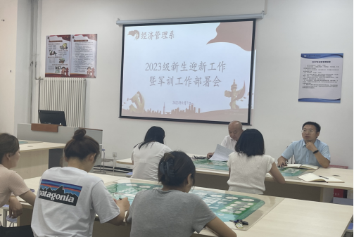 9月7日下午,我系在经管楼ERP实训室召开2023级新生迎新工作暨军训工作部署会,系主任张言雄,书记陈宇以及2023级新生全体辅导员和教学管理人员参加会议,会议由张言雄主持。