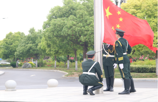 鲜艳的五星红旗伴随着雄壮的国歌冉冉升起,全体师生庄严肃立,高唱国歌向国旗行注目礼