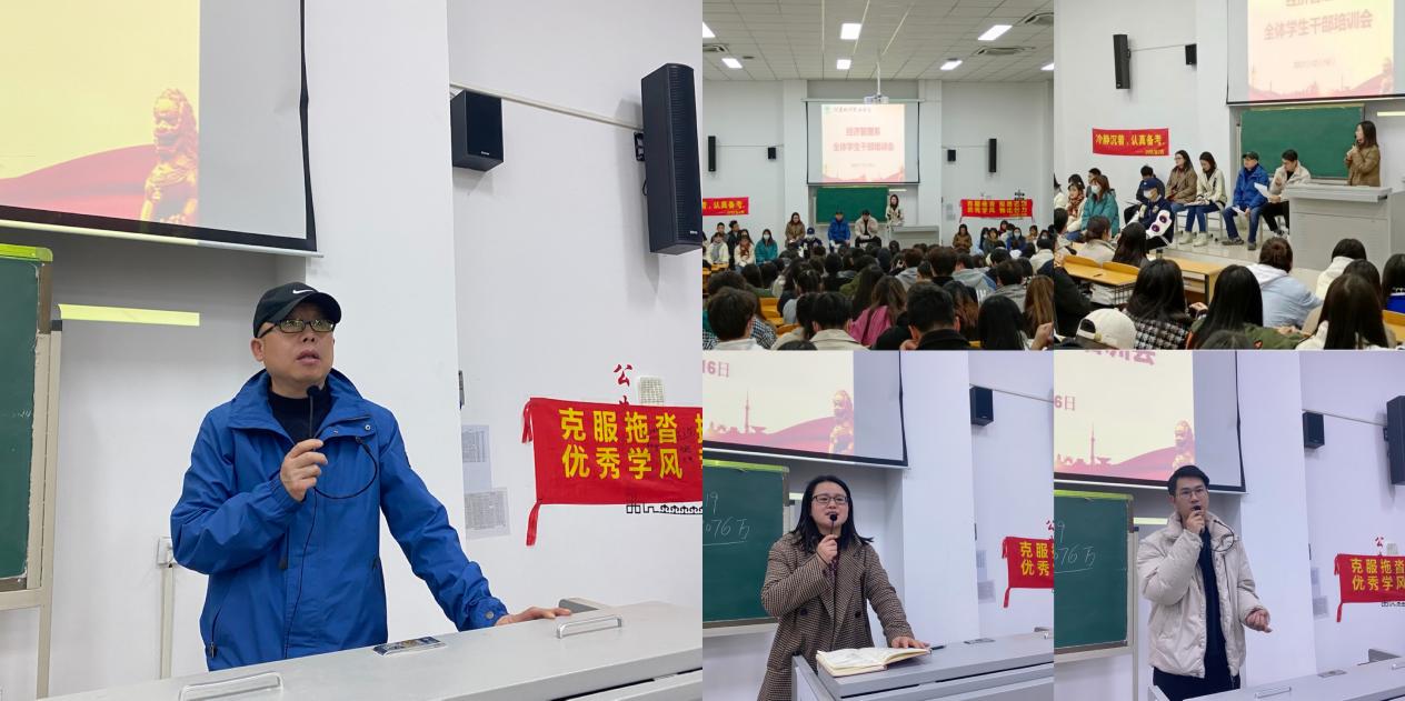为进一步加强员工管理,提高员工干部的思想意识与工作能力,我系于2021年12月16日,在2号教学楼合堂五教室召开了员工干部培训会,主要参会人员为2021级全体员工干部及团总支员工会工作人员。参加会议的领导老师有:经济管理系党支部书记陈宇、团总支书记王雨、辅导员冷安冉、任佳慧、李坤。会议由团总支书记王雨主持。