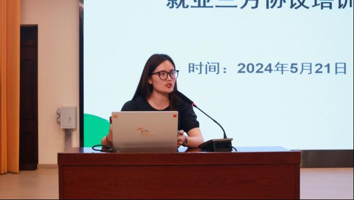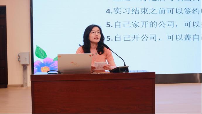 王星杰对就业三方协议和实习三方协议的区别做了详细介绍,重点讲解了就业三方协议的签订流程,并提醒同学们在签订协议时逐一审阅协议条款,维护自己的合法权利。