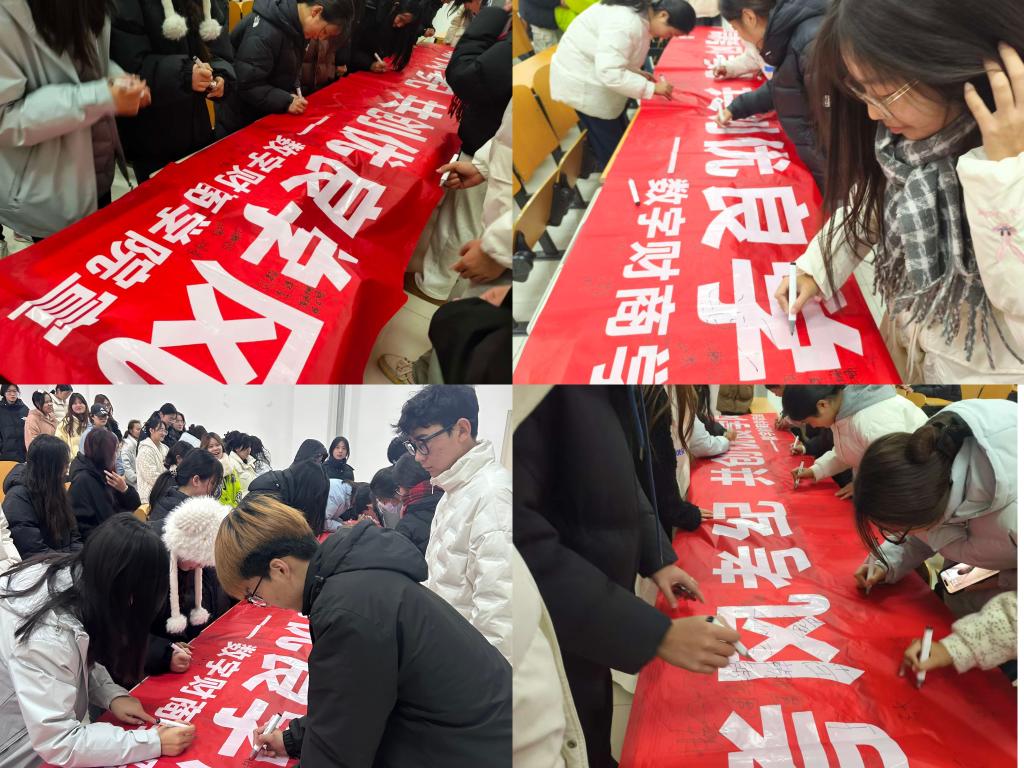 本次活动精心设置了横幅签名环节,在庄重而热烈的氛围中,同学们手持签字笔,在印有“以诚信明考纪,用规章立考风”、“严肃考风考纪,共创优良学风”的横幅上郑重地签下自己的名字,每一个签名都代表着对诚信的坚定承诺,展现出他们对诚信考试的决心。受助员工纷纷表示,在未来的学习和生活中会时刻牢记诚信原则,做一个有理想、有道德、有文化、有纪律的新时代青年。