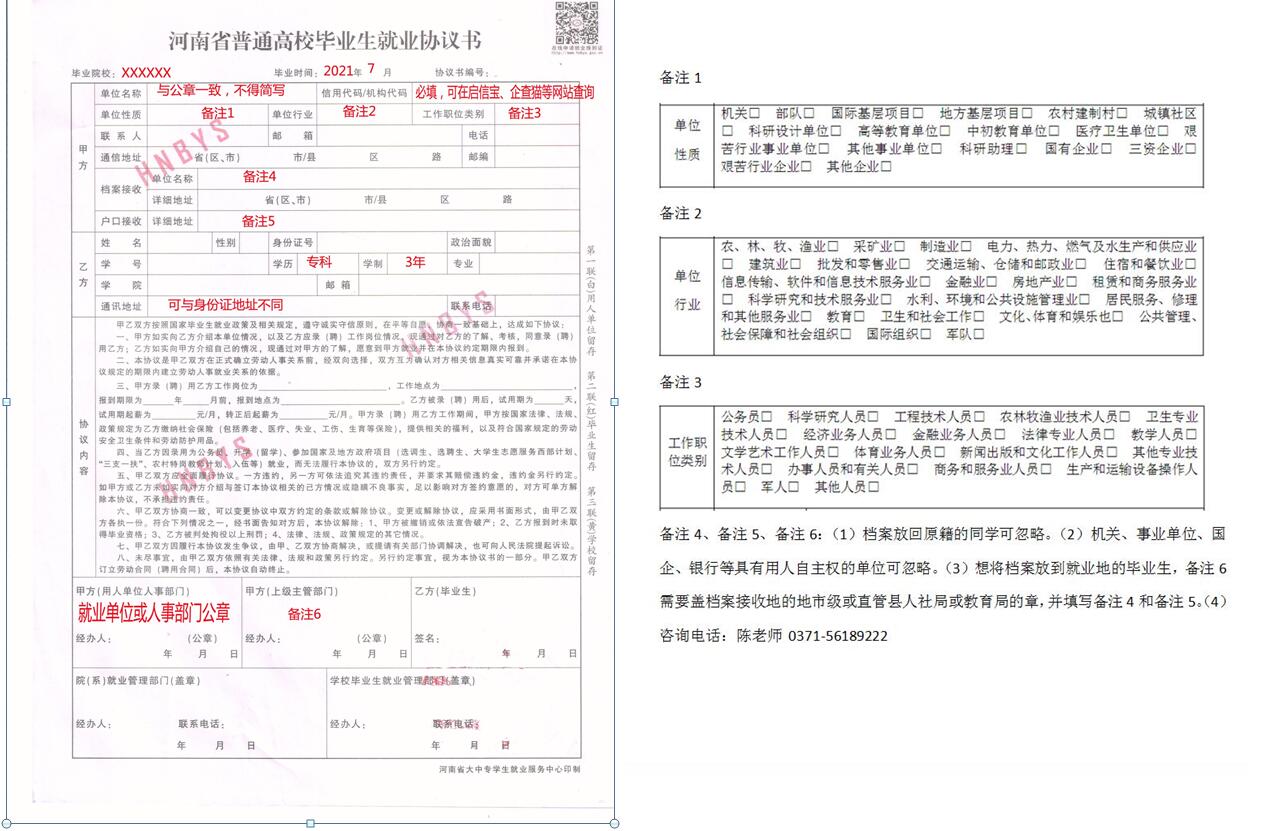 就业指导:河南省普通高校毕业生就业协议书填写说明