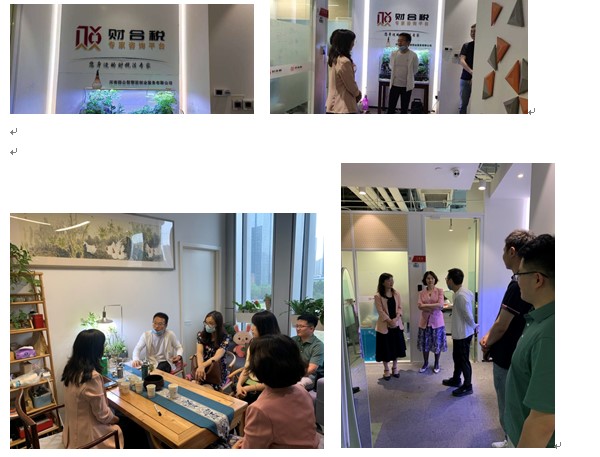 系主任张言雄和会计教研室主任苏世娟、财管教研室主任李想在河南豫企汇代理记账有限公司访企参观座谈。