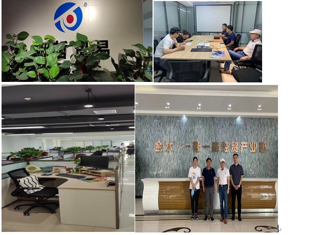 党支部书记陈宇和电子商务教研室主任马瑞学在郑州金水一带一路经贸产业园河南邦哲贸易有限公司访企参观座谈。