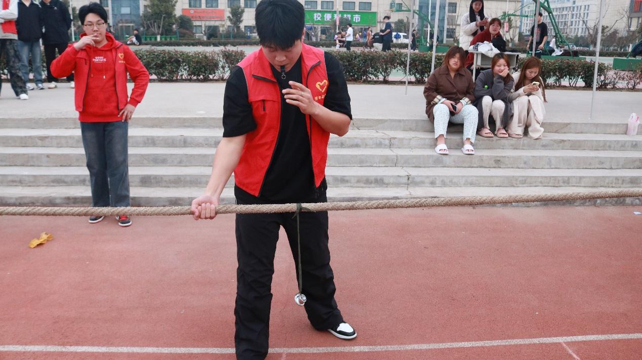 赛场上,各参赛队伍整齐列队,蓄势待发。队员们双手紧握麻绳,脚蹬地面,身体向后倾,眼神中透露出坚定与执着,随着裁判的一声哨响,双方队员开始较劲,红绸在绳子上来回移动,场上的气氛瞬间紧张到极致,同学们呐喊助威声此起彼伏,响彻云霄。在比赛过程中,各参赛队伍充分展现了团结协作、坚韧不拔的精神,他们相互鼓励、相互支持,为了集体的荣誉而战。此次拔河比赛不仅是对力量与意志的考验,更是对集体荣誉感和团队精神的生动展现。