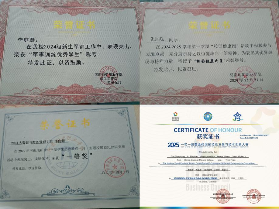 在学习方面,李庭灏秉持“勤为径、思为基”的理念,构建起“预习—深耕—复盘”的完整学习闭环。课前,他精准预习,厘清知识重点;课上,他凝神专注,紧跟老师思路;课后,他细致整理笔记,夯实学习根基,自习室也成为他最常驻足的“能量充电站”。这份持之以恒的勤勉让他的成绩始终稳居班级前列,更支撑他在各类赛事中崭露头角。“以学促赛、以赛践学”的良性循环,让他的专业本领在实战磨砺中愈发扎实。