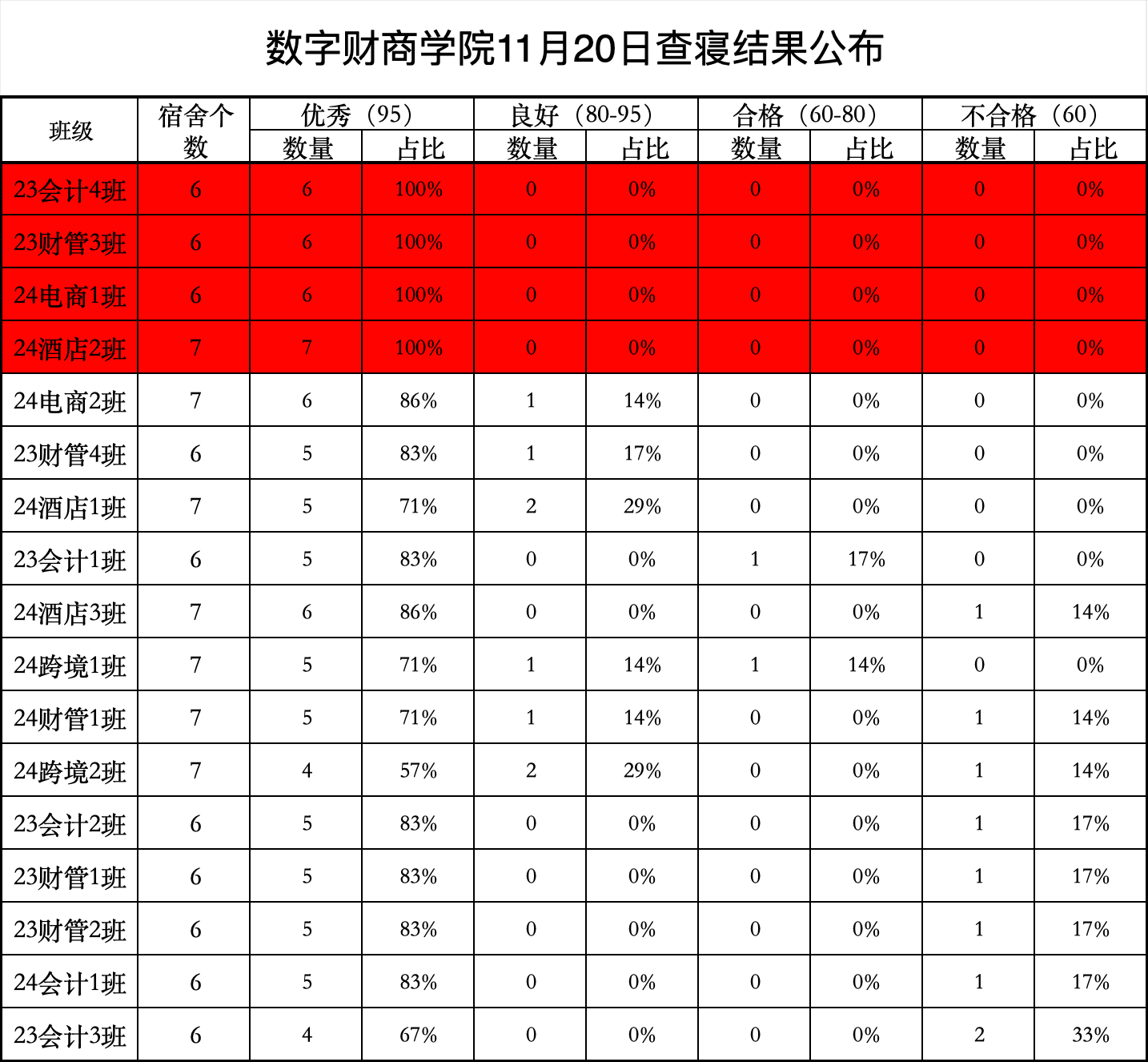 公司于11月20日(周三)开展了宿舍卫生检查,现将公司检查结果公布如下: 优秀宿舍展示:2号楼优秀:309、311、312、313、315、316、320、321、323、325、326、327、328、330、3313号楼优秀:202、203、20...